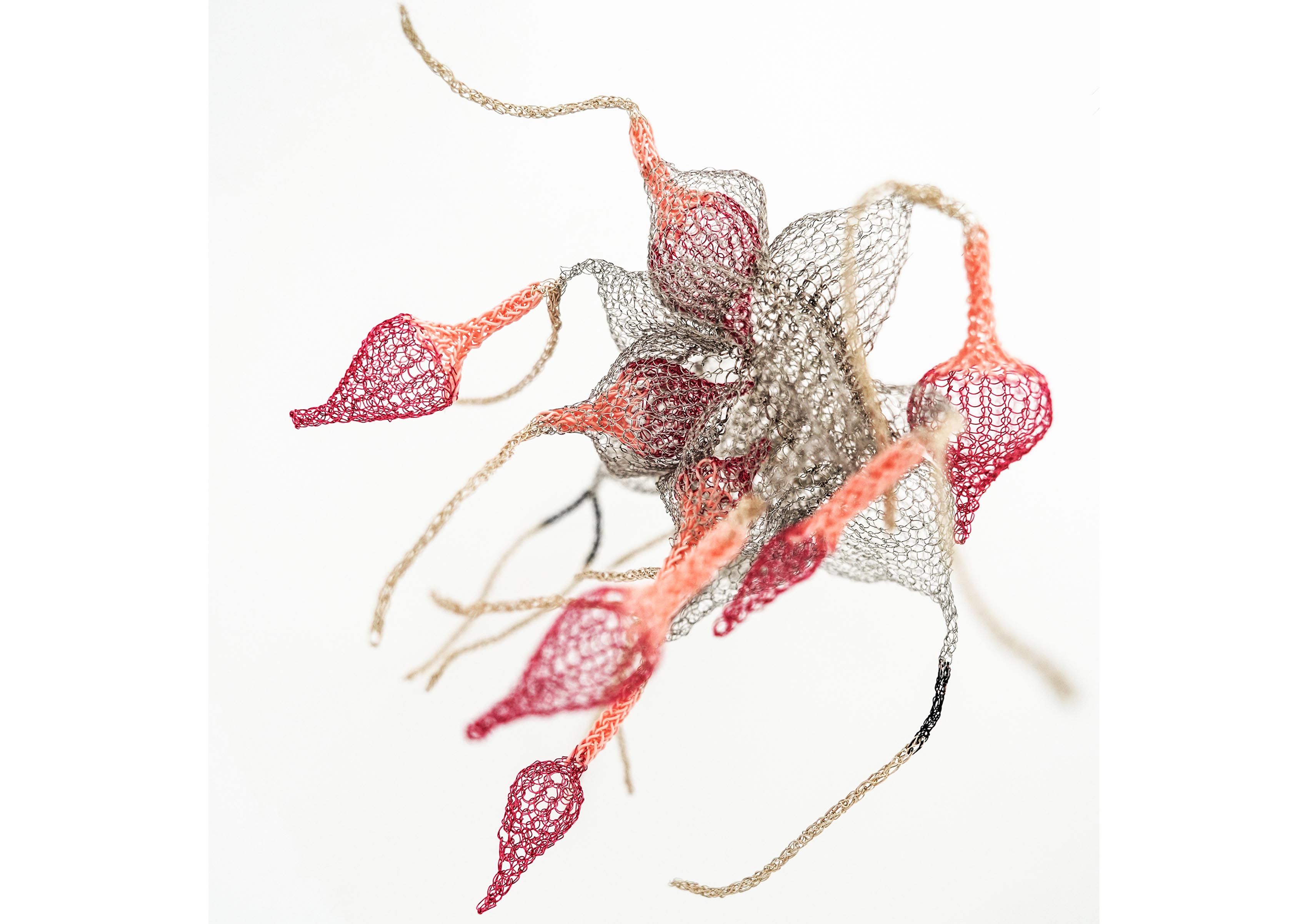 Metal wire crochet evokes this submarine world: organic, colorful, soft, and transparent. Yet the challenge is that every step is irreversible, but the advantage is every step is innovative. Everything revolves around the design theme, creating new connection methods, structural shapes, and flexible and smooth visual language expression.